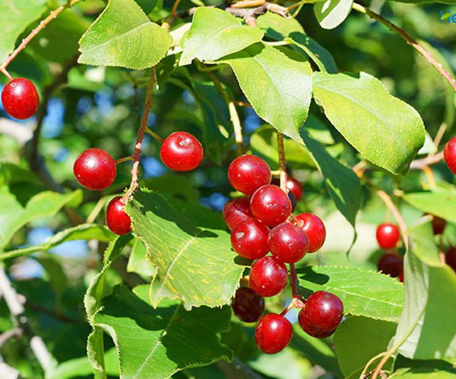Pin Cherries, also known as Fire Cherries, are very tart, sour stone berries that come in a group of two. They are similar in Pie Cherries, also a sour, yet more popular, cherry, but pin cherries grow smaller in size, about ¼” in diameter (Maine Tree Club, 2001). They were so named Fire cherries since they are often planted in woods after forest fires to help promote healthy forest regrowth (Maine Tree Club, 2001). Pin Cherry Trees can grow relatively tall, up to 30 feet. Though the cherries are harder to pick than other stone berry counterparts, they are still a ready source of edible plants available throughout New England.